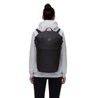 通勤シーンやプライベートまで、幅広く活躍するバックパック。背面のジッパーからもアクセスできるメインコンパートメントで、ノートPCやタブレット、書類などをラクラク出し入れができます。背面部分にはベルトが付いていて、キャリーバッグのハンドルに取り付けることも可能。合わせやすいシンプルなデザインに、MAMMUTオリジナルのマンモスロゴがアクセントを効かせます。