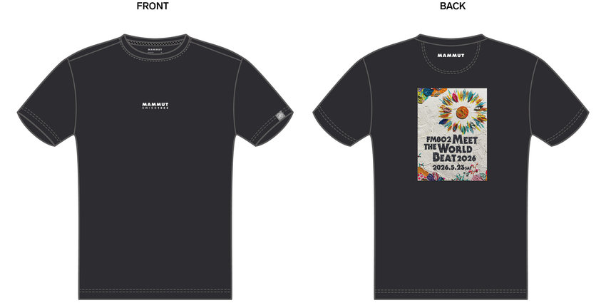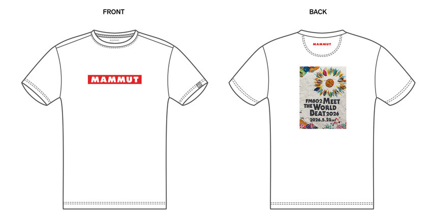マムートは、万博記念公園で開催される野外音楽フェス「FM802 MEET THE WORLD BEAT 2026」において、フェス会場限定アイテム、およびストア先行販売アイテムとして、コラボレーションTシャツを展開します。
