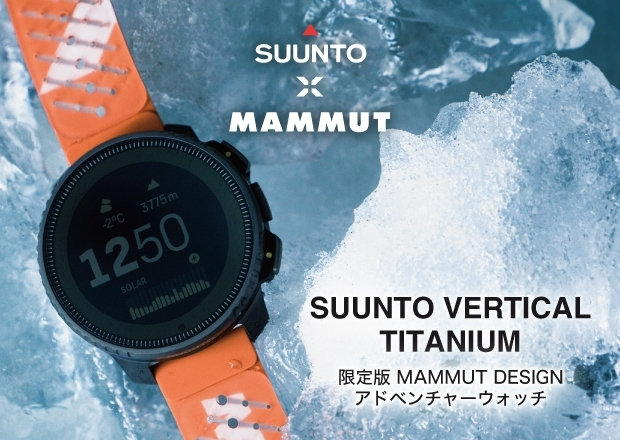 フィンランドのテクノロジーブランド SUUNTO(スント)と初めてのコラボレーションアイテムとなる、新しいアドベンチャーウォッチ SUUNTO X MAMMUT VERTICAL TITANIUM を発売します。今回発売されるアドベンチャーウォッチは、マムートデザインの限定モデルとして、マムートの「アイガー・エクストリーム - EIGER EXTREME -」コレクションをベースにした特別デザインのストラップになっております。アイガー・エクストリームコレクションのアイコンであるセーフティオレンジの色合いと、極限への挑戦を象徴する「X」の文字が際立つコラボレーションウォッチとなっております。
