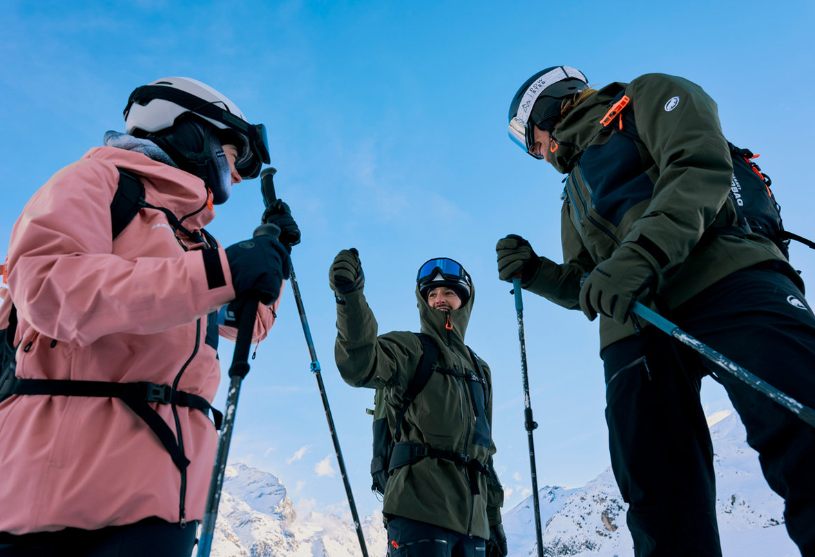バックカントリースキーはハードな登りから始まります。たとえ凍えるような寒さの中でも、激しい運動によって体はすぐに熱を発します。そんな時に頼りになるのが、通気性と吸湿速乾性に優れたウェアです。汗を素早く逃がすことで、オーバーヒートを防ぎ、快適さを保てます。