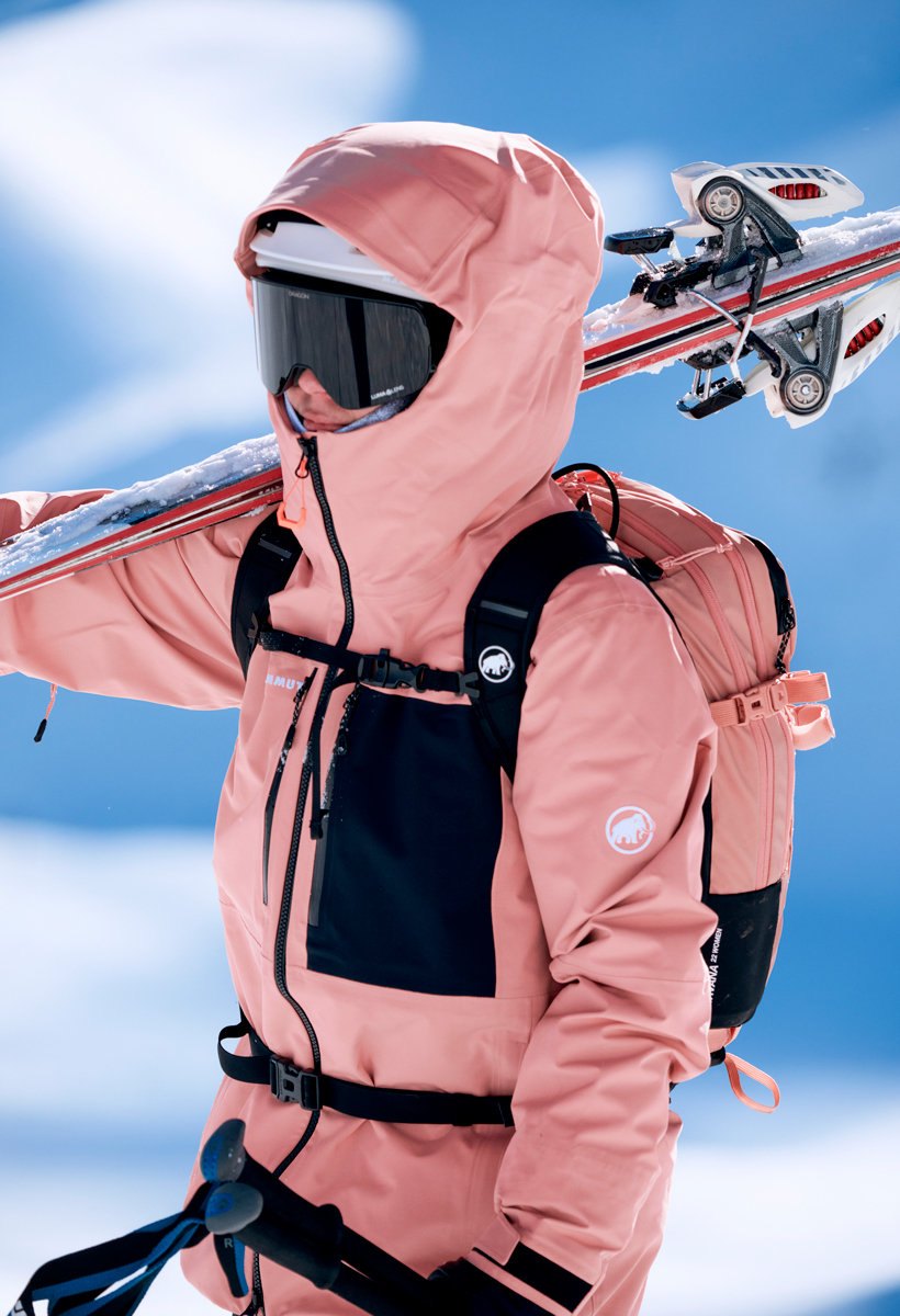 ソフトシェル:通気性と動きやすさに優れているため、ドライなコンディションや風の弱い日に最適です。マムートのソフトシェルは、製品名に「SO/ソフトシェル」という文字が入っています。